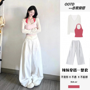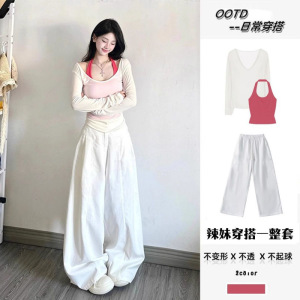 三件套女夏季纯欲风辣妹防晒长袖罩衫上衣吊带背心高腰阔