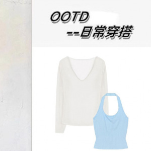 白色防晒+蓝色打底+蓝色阔腿裤【三件套】