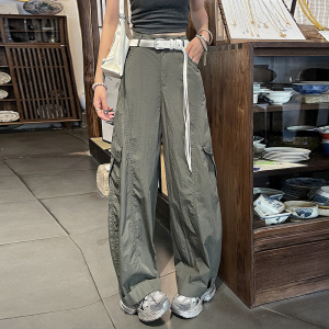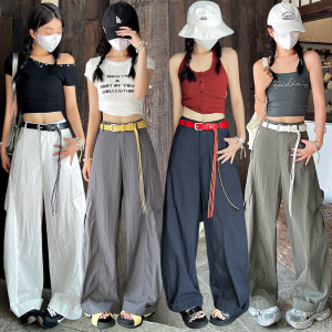 アメリカンファッションハイウエストオーバーオール女性の秋の新デザインカジュアル多用途ルーズスリムストレートワイドレッグパンツ