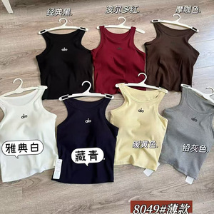 秋薄-衣架装8049固定杯螺纹中长背心工字背字母休闲百搭女内衣