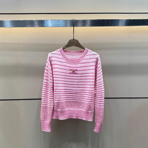 25秋季新款名媛小香风粉色条纹拼色套头毛衣针织开衫