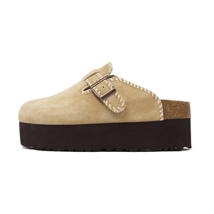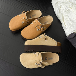 2025夏季勃肯鞋包头半拖鞋女绣线外穿厚底增高沙滩小个子软木拖鞋