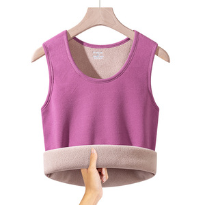 冬季男士内穿打底马甲女士磨毛贴片修身无袖坎肩加绒加厚保暖背心