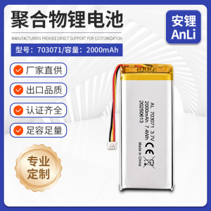 CE认证703071聚合物锂电池2000mAh婴儿监护器AI玩具安防探测仪器