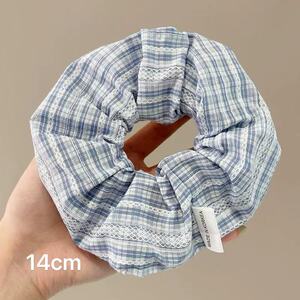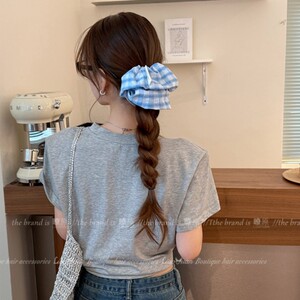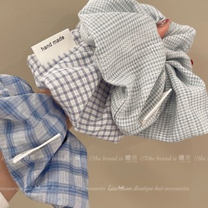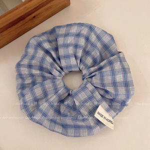 海盐蓝色系格纹大肠发圈女韩系扎马尾丸子头发绳高弹力耐用橡皮筋