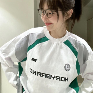 2025秋季新款美式休闲运动球衣t恤女宽松撞色长袖上衣ins潮牌卫衣