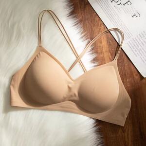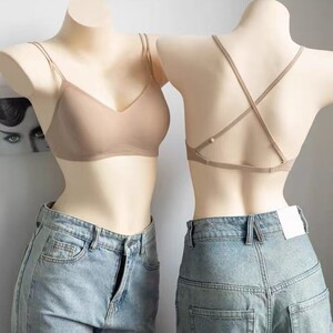 粉底液交叉美背内衣女秋季薄款小胸聚拢防下垂隐形无痕大露背文胸