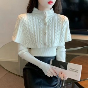 2025新款洋气麻花针织衫上衣女秋冬内搭长袖内搭两件套打底毛衣女