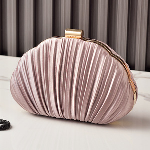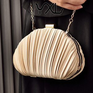 跨境新款贝壳晚宴包褶皱手拿包丝绸旗袍包宴会包礼服晚装包clucth