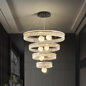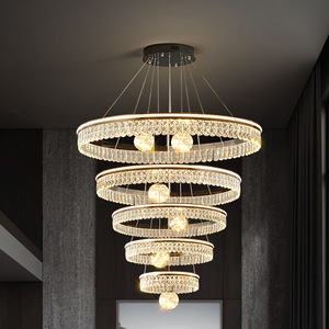 轻奢水晶客厅吊灯现代大气高档别墅复式楼挑空楼中楼自建房大吊灯