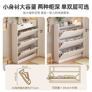 实木翻斗鞋柜家用门口新款2024收纳柜一体靠墙室内窄鞋架