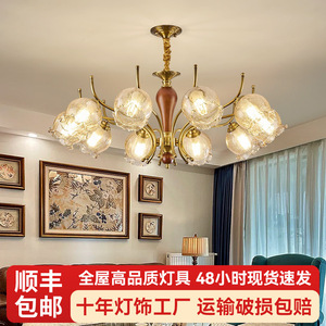 全铜法式中古美式复古客厅吊灯黑胡桃木怀旧简约卧室高级感主吊灯