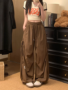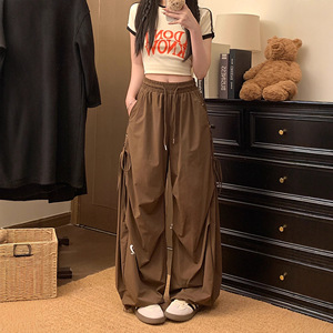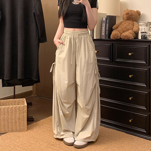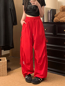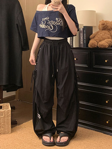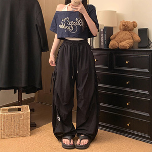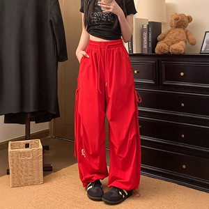 美式运动抽绳绑带速干直筒长裤女夏季爵士街舞宽松休闲工装裤子