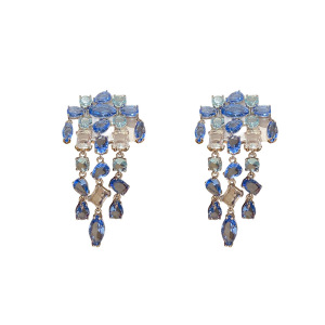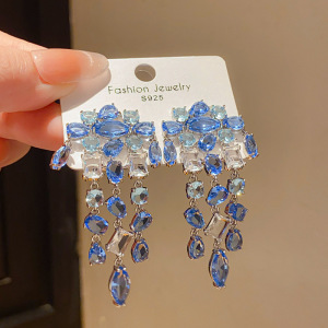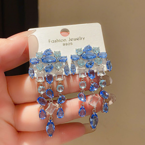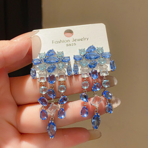 银针轻奢锆石方形水滴流苏耳环复古小众高级感时尚个性气质耳饰女