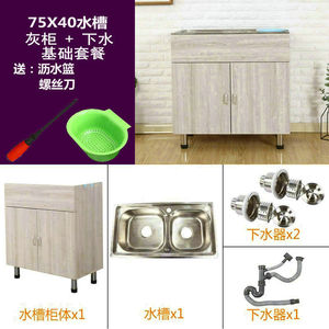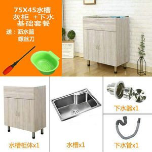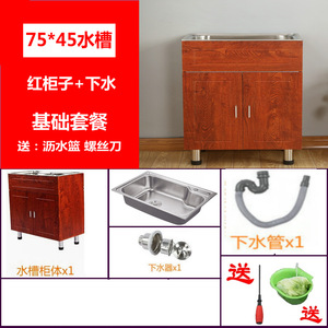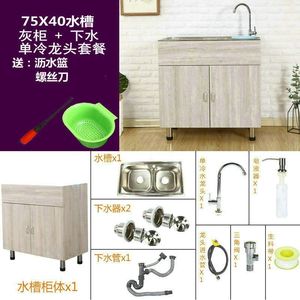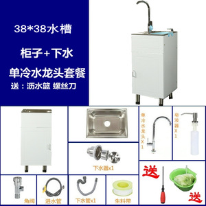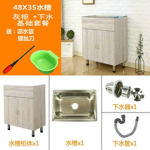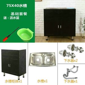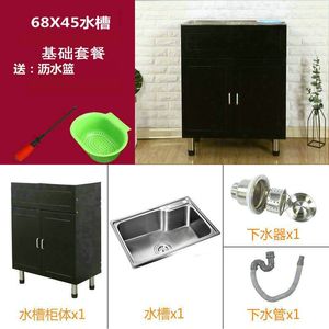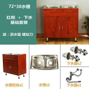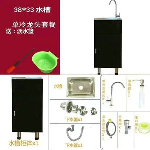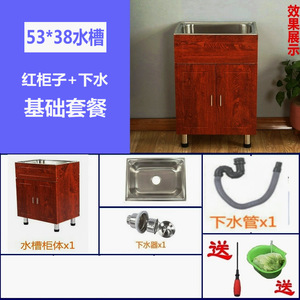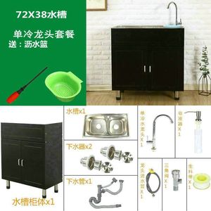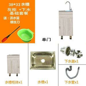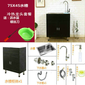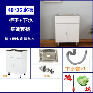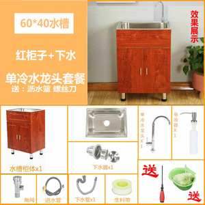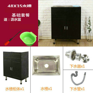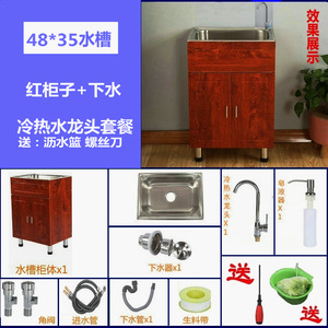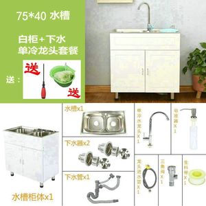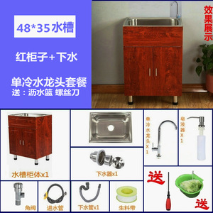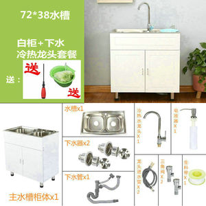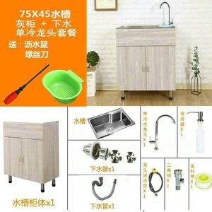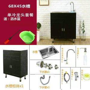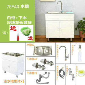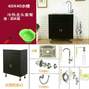厨房304不锈钢水槽柜子洗菜碗盆单双槽带支架洗衣水池储物一体柜