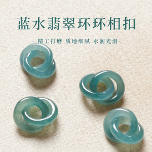 天然A货蓝水翡翠环环相扣配饰危料玉石diy手串手链项链配件饰品