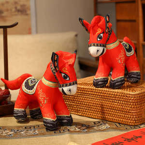 2026年马年吉祥物小马公仔毛绒玩具国风布艺生肖马属马儿童布娃娃