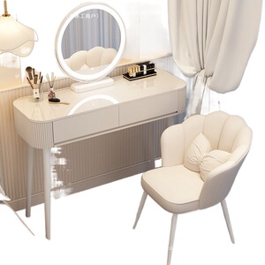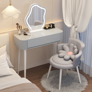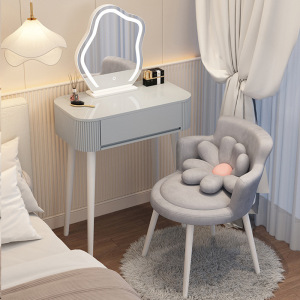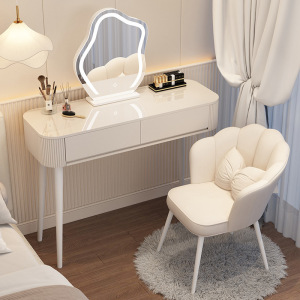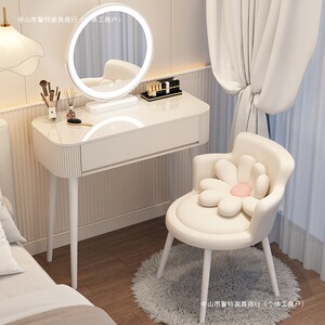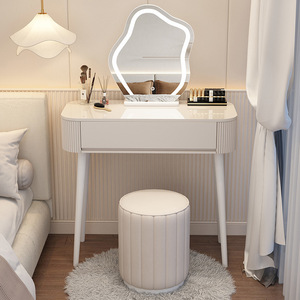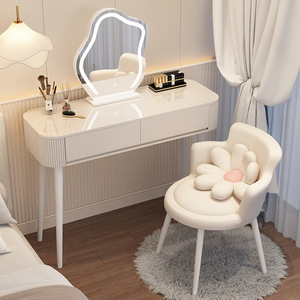 简白梳妆台卧室简约现代小户型化妆台轻奢侘寂奶油风治愈系化妆