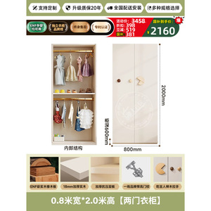 【0.8m宽*2.0m高】两门衣柜-(全实木)ENF级