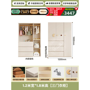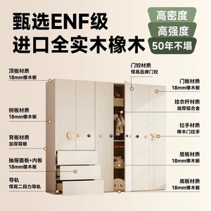 ENF级橡木全实木FAS儿童衣柜卧室家用奶油风平开门拉手宝宝衣橱