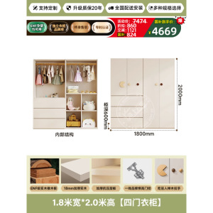 【1.8m宽*2.2m高】四门衣柜-(全实木)ENF级