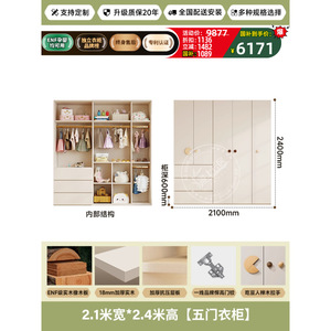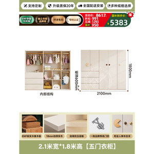 【2.1m宽*1.8m高】五门衣柜-(全实木)ENF级