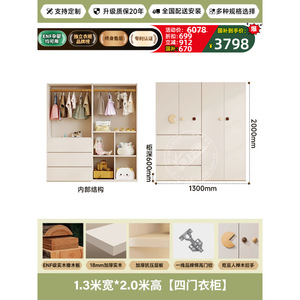 【1.3m宽*2.0m高】四门衣柜-(全实木)ENF级