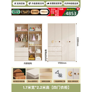 【1.7m宽*2.0m高】四门衣柜-(全实木)ENF级
