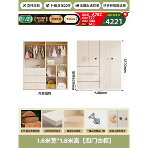 【1.6m宽*2.2m高】四门衣柜-(全实木)ENF级