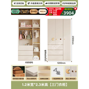 【1.2m宽*2.3m高】三门衣柜-(全实木)ENF级
