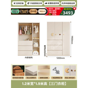 【1.2m宽*1.9m高】三门衣柜-(全实木)ENF级