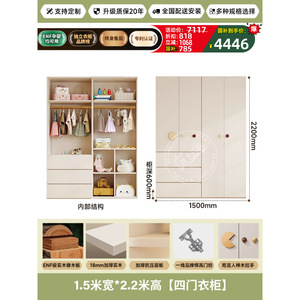 【1.5m宽*2.3m高】四门衣柜-(全实木)ENF级
