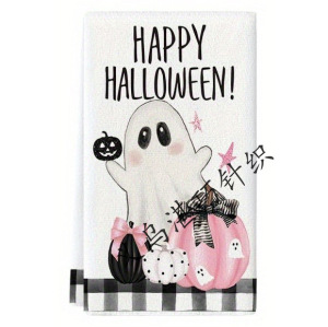Amazonの人気のクロスボーダーハロウィンタオルホリデーデコレーションマイクロファイバータオルギフトキッチンタオル