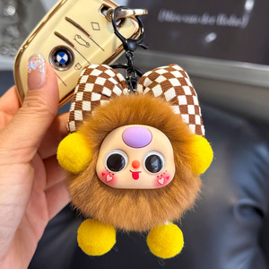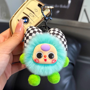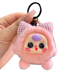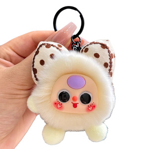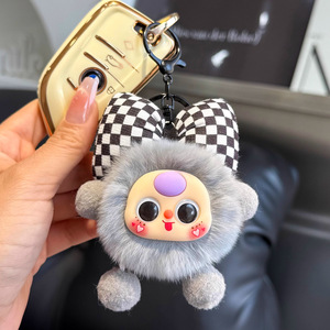 イミテーションレッキスファーの蝶結び型の小さな石炭ボール型の車のキーホルダー、絶妙な漫画風人形、ブックバッグの飾り