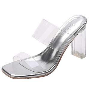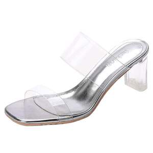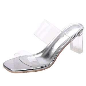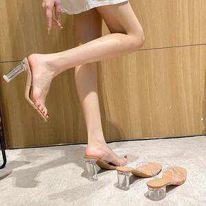 ハイヒールサンダル女性のための 2025 夏の新ファッション透明ミッドヒールクリスタルシューズファッション厚いヒールアウタースリッパ