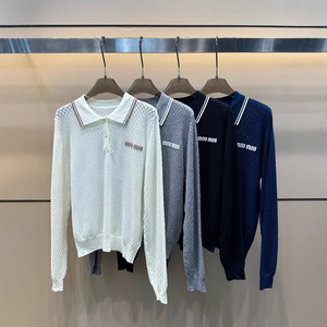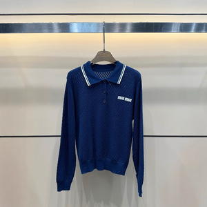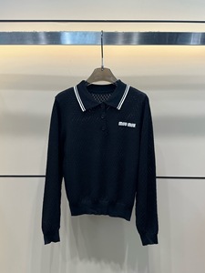mm25秋季新款学院风百搭提花字母翻领针织长袖