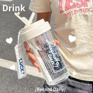 新款水杯耐高温女生可爱高颜值茶水分离吸管塑料双饮杯子