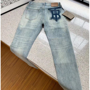 水洗牛仔裤跨境印花男士直筒潮牌休闲简约现货整单基本款长裤
