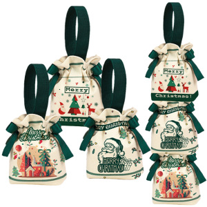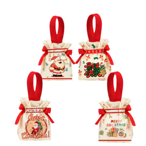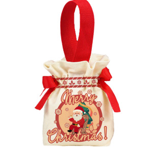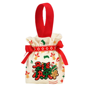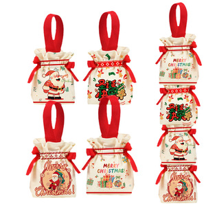 跨境专供圣诞礼品袋平安夜苹果抽绳帆布束口袋儿童圣诞老人糖果袋