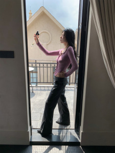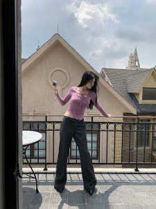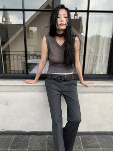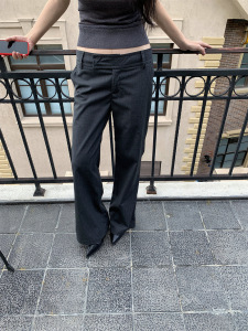 [9hour]美式简约条纹西装裤女 2025秋季低腰气质通勤休闲裤zd8135