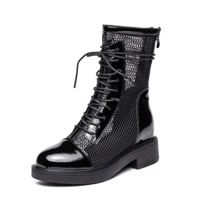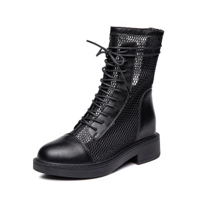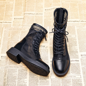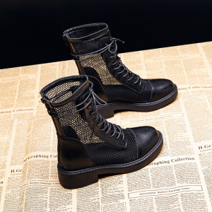 真皮内增高网靴女2025夏季新款透气马丁靴显瘦显高女凉靴短筒皮靴