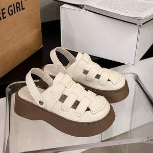 ファッションサンダル厚底ローマンサンダル女性の夏のつま先ハーフスリッパ 2025 新しいビーチサンダルスリッパ下駄