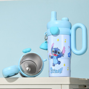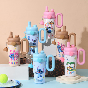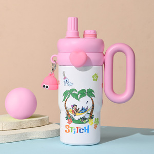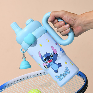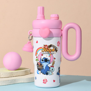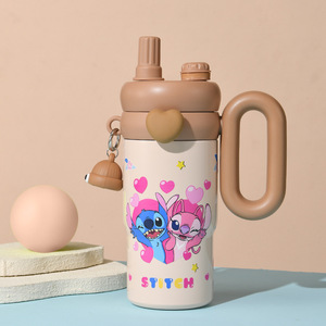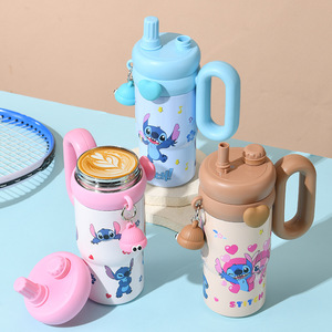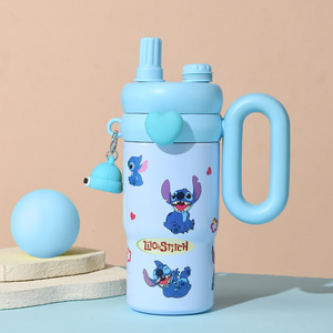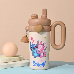 卡通公仔大容量吸管杯超萌可爱带手柄保温杯高颜值316不锈钢水杯