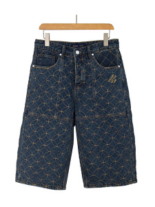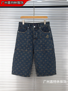 跨境外贸正确L家25s新款驴家菱形刺绣牛仔短裤男女驴家牛仔短裤