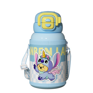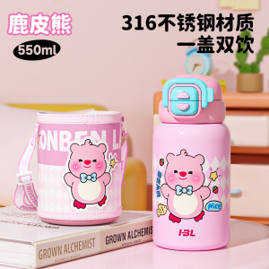 儿童保温杯316不锈钢大容量高颜值可爱学生双饮锁扣水杯便携杯带