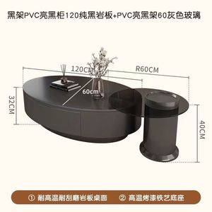 ブラックキャビネット: ピュアブラックスレートコーヒーテーブル 120+60 グレーガラスサイドテーブル