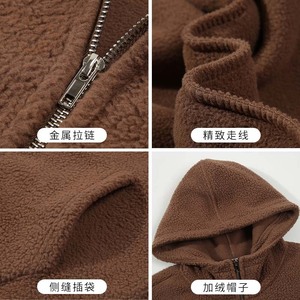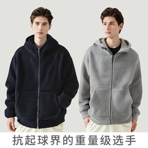登捷男装370克重磅摇粒绒连帽卫衣男冬季落肩羊羔绒加厚外套帽衫