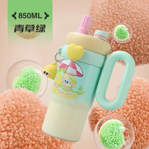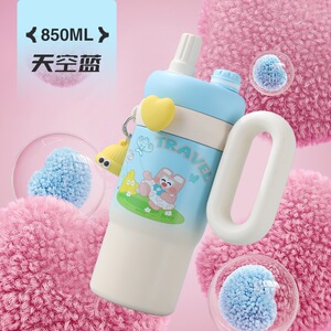 卡通公仔不锈钢保温杯女生大容量吸管杯高ins颜值便携把手水杯