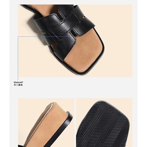 牛皮!2025网红方头软底H凉拖鞋女外穿休闲百搭沙滩厚底增高拖鞋
