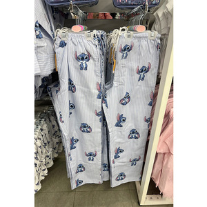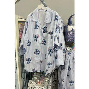 可爱卡通史迪仔印花睡衣女款2025春秋新款大码长袖长裤家居服套装
